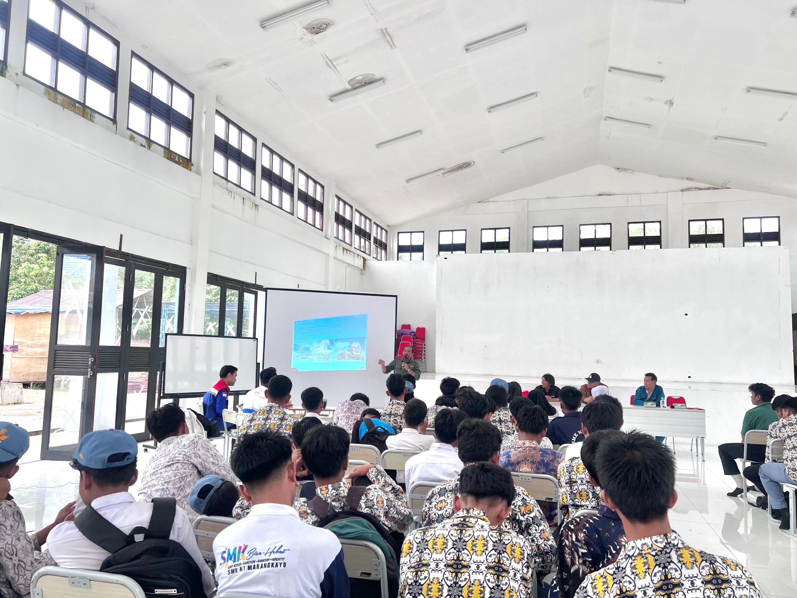Materi utama disampaikan oleh Syafran Mawardi, Supervisor Mekanik PHSS, yang menjelaskan fungsi, jenis, dan penerapan alat berat dalam industri migas. Selain itu, Aidil Aqli dari tim Communication & Relations PHSS juga berbagi mengenai budaya kerja dan keterampilan nonteknis yang dibutuhkan dunia kerja.
