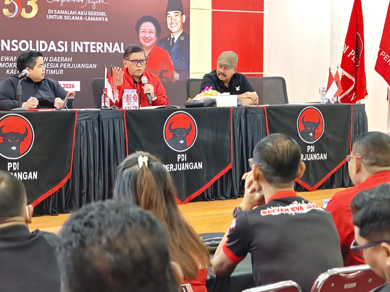 SUDUTKATA.COM, SAMARINDA – Sekretaris Jenderal (Sekjen) DPP PDI Perjuangan Hasto Kristiyanto memimpin rapat konsolidasi internal Dewan Pimpinan Daerah (DPD) PDI Perjuangan Kalimantan Timur di Samarinda, Senin, 2 Februari 2026. Rapat tersebut dihadiri pengurus partai dari seluruh kabupaten dan kota di Kalimantan Timur (Kaltim).